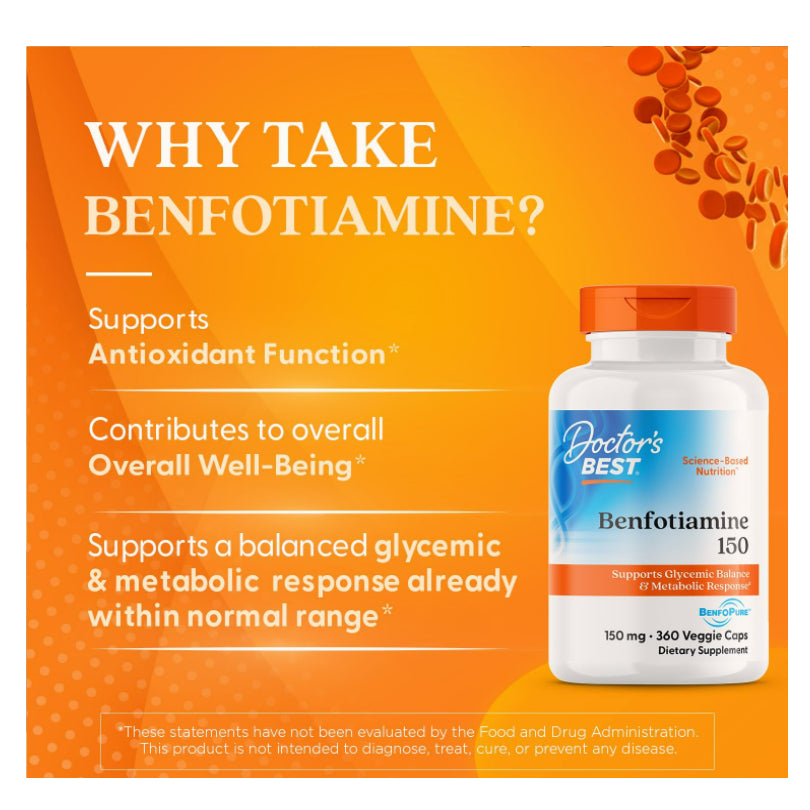 Both Doctor's Best Benfotiamine 150 + Alpha-Lipoic Acid 300 and Benfotiamine with BenfoPure 150 mg are dietary supplements that contain benfotiamine, a synthetic derivative of thiamine (vitamin B1), along with other ingredients. Let's explore the potential uses and benefits associated with each of these formulations: