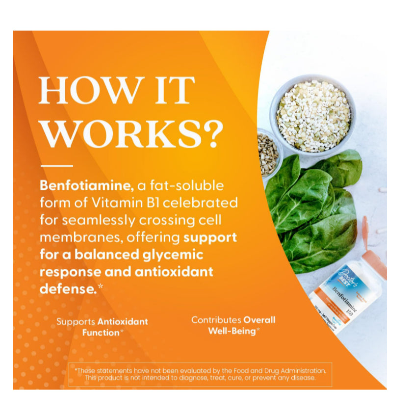 - **High Purity:** BenfoPure is a specific brand of benfotiamine known for its high purity and quality standards. This may contribute to enhanced absorption and utilization in the body.