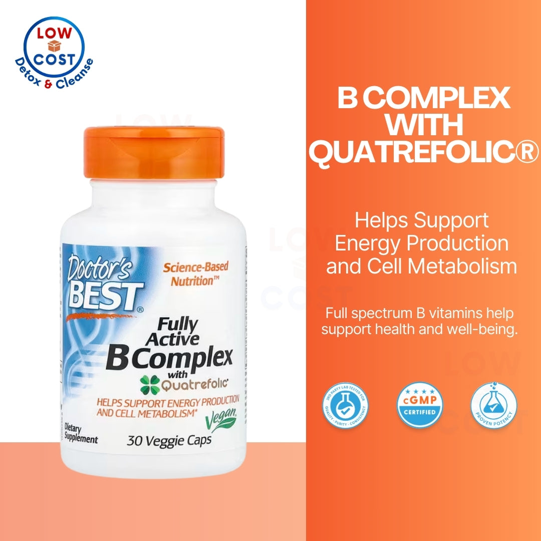 LowCostPH | Doctor's Best Fully Active B Complex, Non-GMO, Gluten| B12 |BioActive Complete B Complex