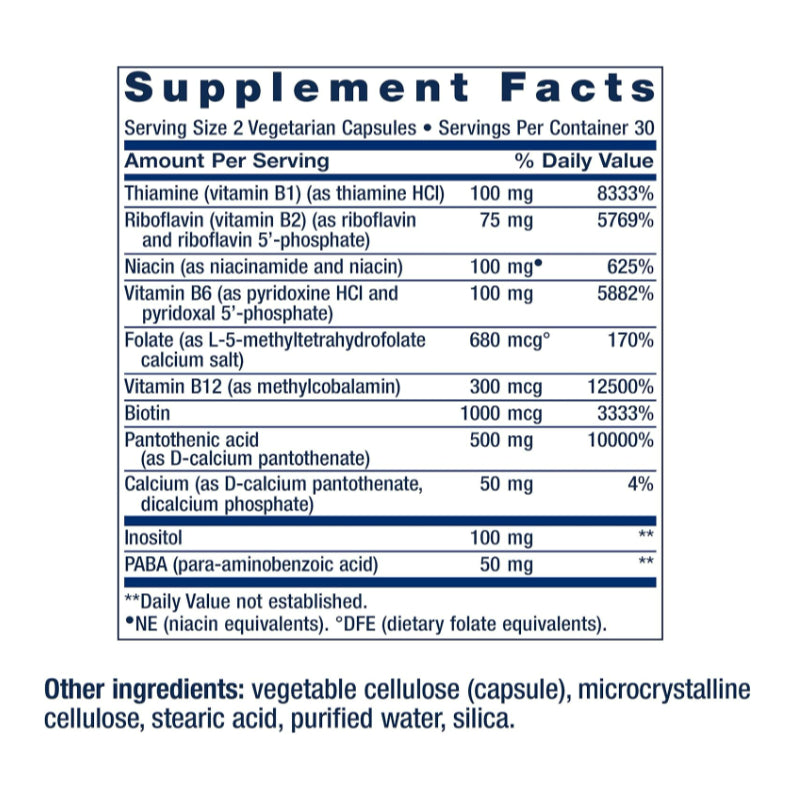 Additional Ingredients: Some formulations may include additional ingredients, such as choline, inositol, or other compounds that complement the B vitamins.