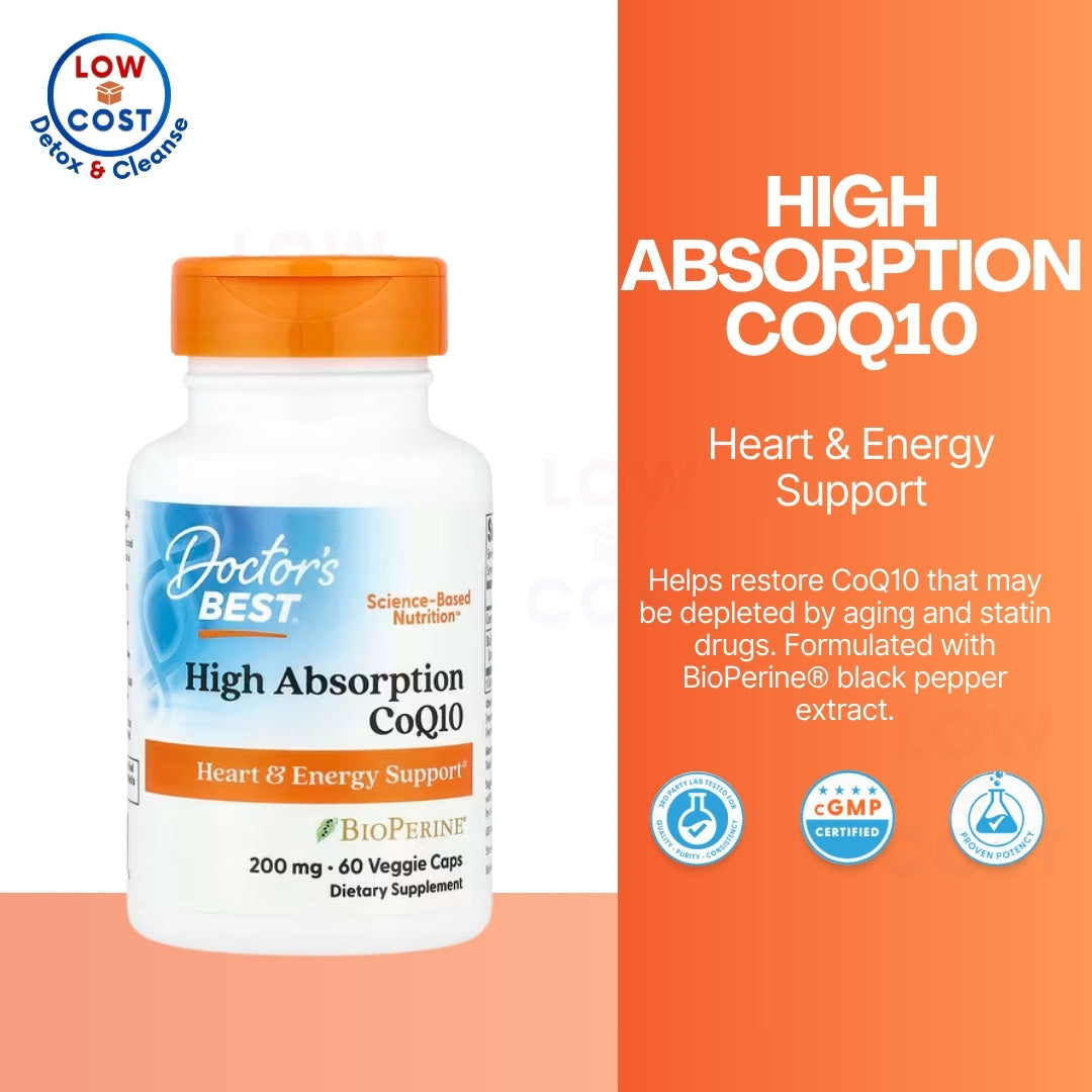 LowCostPH| Doctor's Best High Absorption CoQ10 with BioPerine, Heart Health 200mg-60veggiecaps