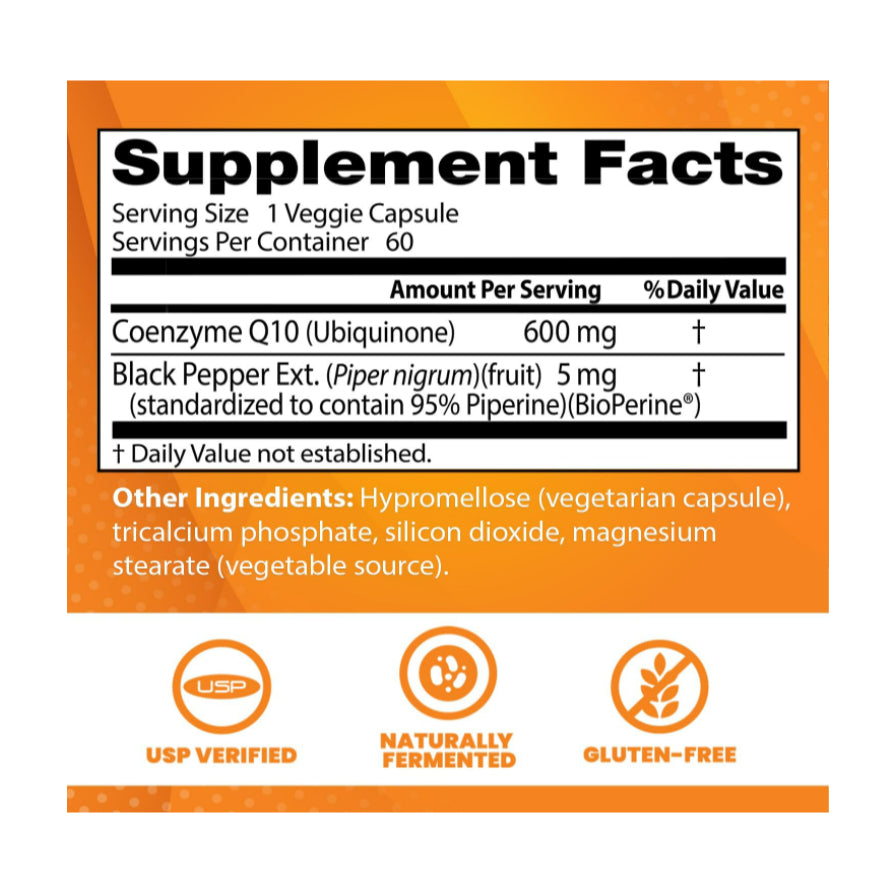 Bioavailability: BioPerine® is a patented black pepper extract that improves the absorption of nutrients. By enhancing the bioavailability of CoQ10, BioPerine® ensures that the body can more effectively utilize the supplement.