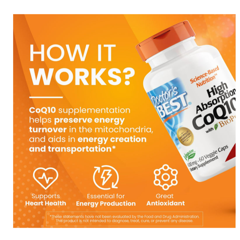 Heart Function: CoQ10 is vital for the production of ATP, the primary energy carrier in cells, especially in the heart. By supporting energy production, CoQ10 can help maintain heart health and function.