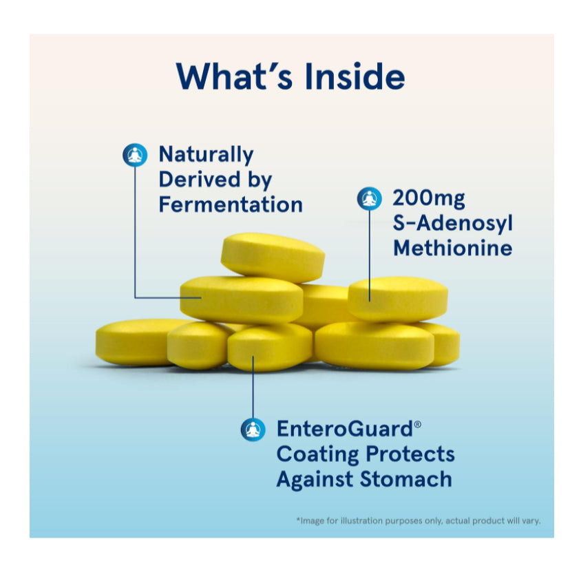 SAM-e helps support healthy levels of glutathione, a critical anti-oxidant which helps protect against free radicals. SAM-e acts as a methyl donor in the synthesis and formation of phosphatidylcholine and L-cysteine, both necessary for maintaining liver health.