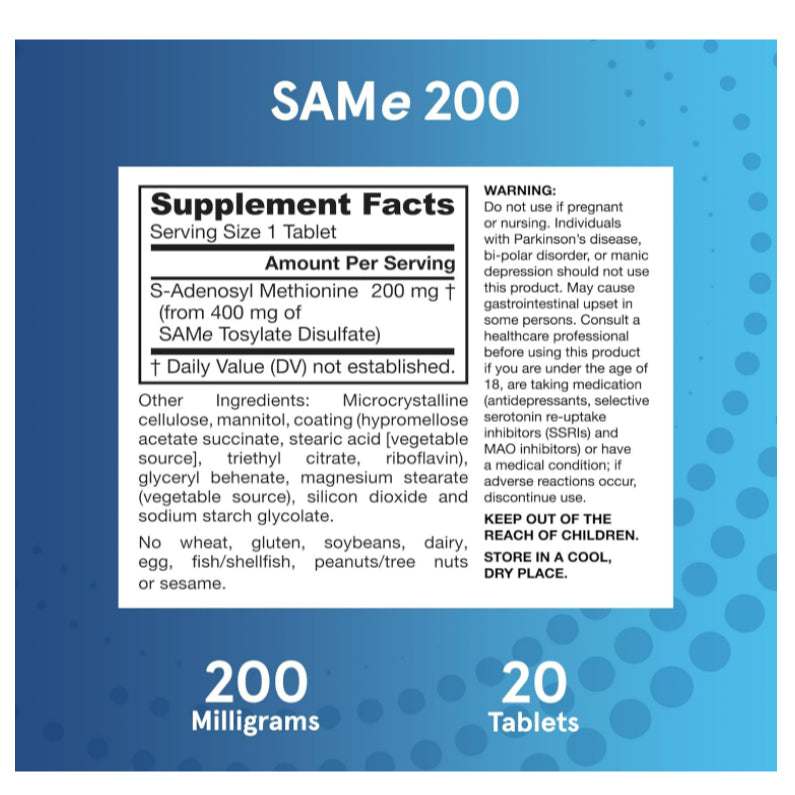 Doctor's Best SAM-e helps replenish your SAM-e levels and promote a healthy mood. SAM-e (S-Adenosyl-L-Methionine) is naturally produced by your body and helps maintain healthy emotions. Various factors such as diet and aging can cause low levels of SAM-e, leaving you feeling unbalanced and moody.