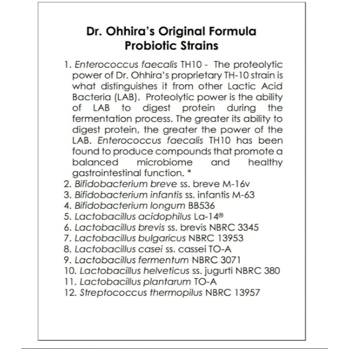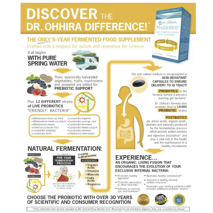 Natural Fermentation: Dr. Ohhira's probiotics are known for their use of natural fermentation processes. This process not only produces beneficial probiotic strains but also includes prebiotics and postbiotics that support gut health.