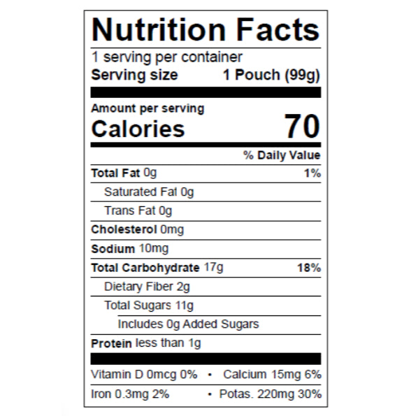 Certified Organic: The puree is made with 100% organic ingredients, ensuring it is free from synthetic pesticides, herbicides, and fertilizers. It is also non-GMO, meaning it does not contain genetically modified organisms.
