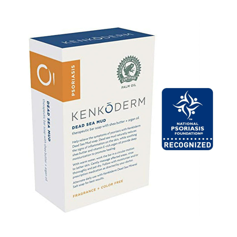 Kenkoderm Psoriasis Dead Sea Mud Soap with Argan Oil & Shea Butter, 4.25 oz, 1 Bar, Dermatologist Developed Skin Care for Soothing & Moisturizing Psoriasis Eczema & Rosacea, Fragrance & Color Free