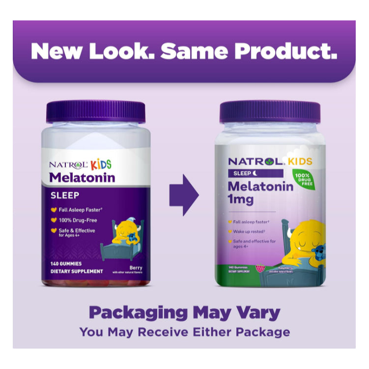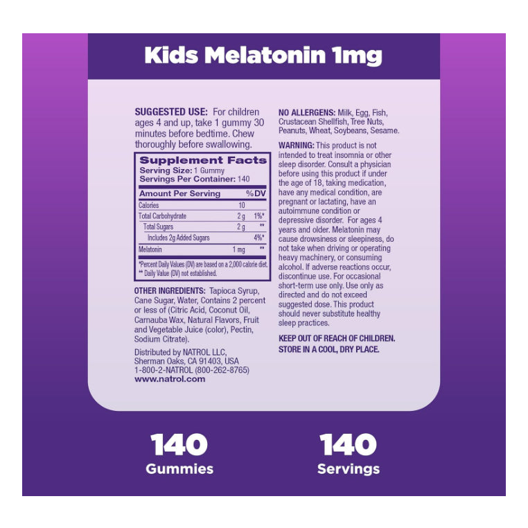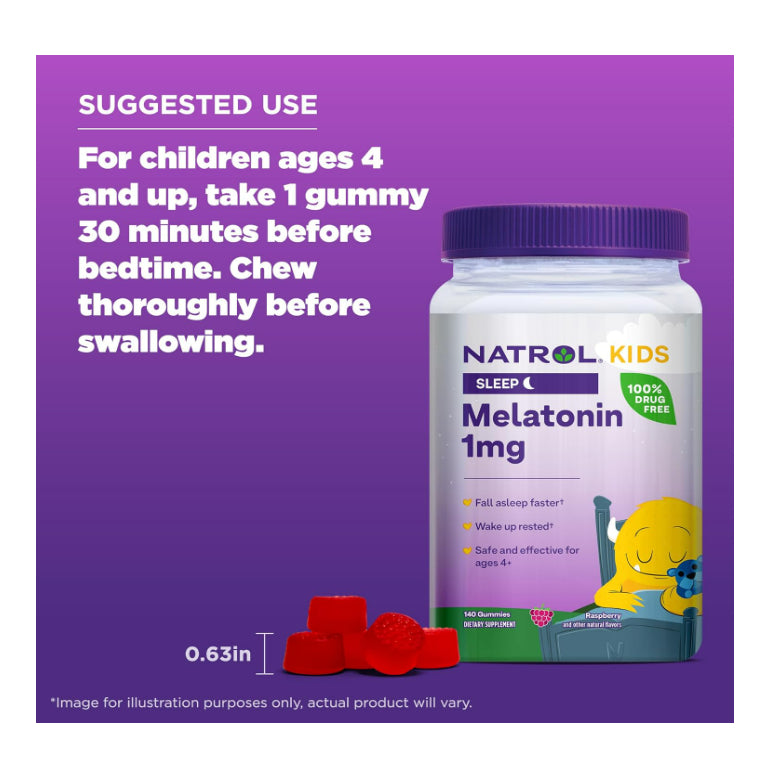 Sleep Support: One 140 count bottle of Natrol Kids Melatonin Gummies for a 140-day supply; features child resistant packaging