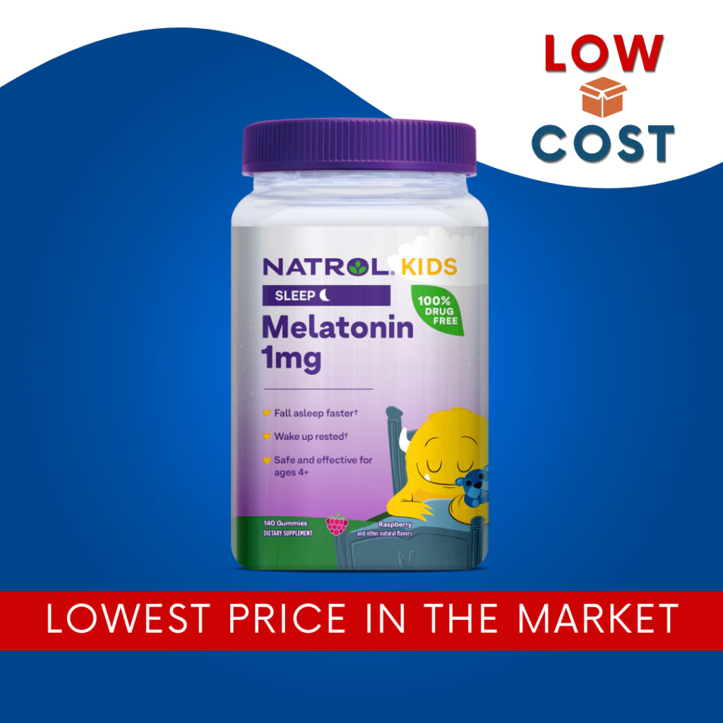 LowCostPH| Kids Melatonin 1mg, Supplement for Restful Sleep, Sleep Gummies for Children, 140 Raspbe