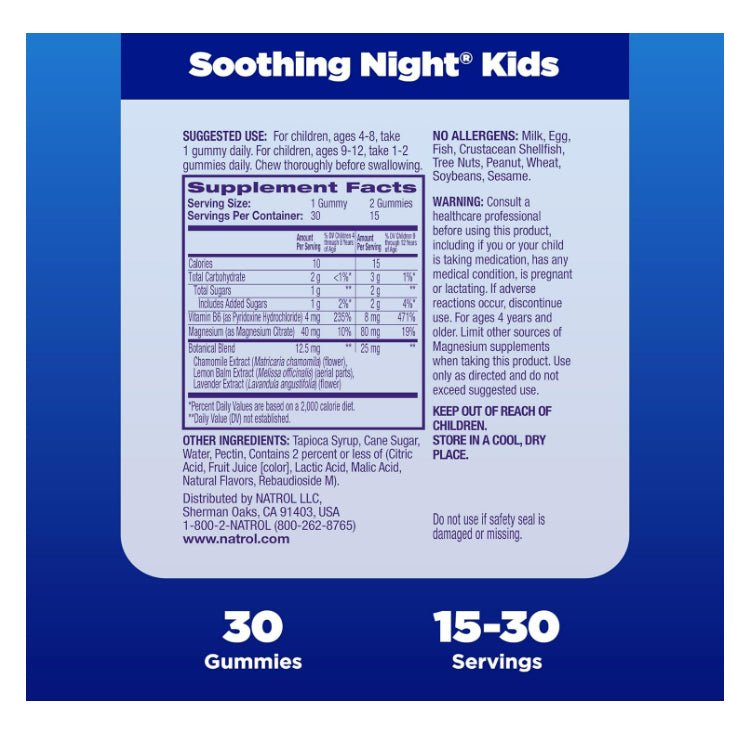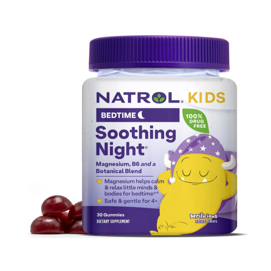 Sleep Supplements for Kids: One (1) 30 count bottle of Natrol Kids Soothing Night Magnesium Gummies for Children in Berilicious Flavor