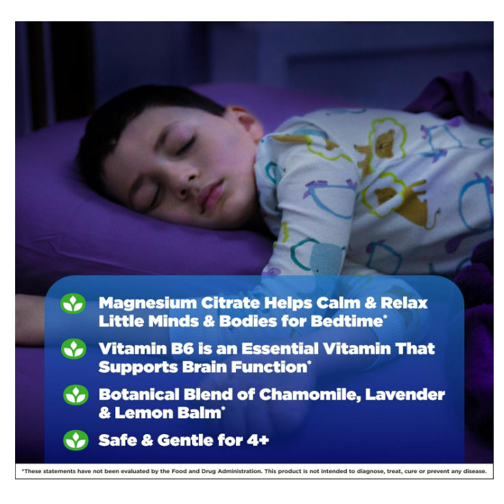 Calming Kids Vitamins: Magnesium supplement gummies with vitamin B6 and a botanical blend to provide magnesium to calm kids' minds and bodies and vitamin B6 help support brain function (1,2)