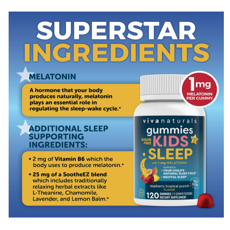 ✔SUPERSTAR INGREDIENTS* - Each kids Melatonin gummy has 1 mg Melatonin and 25 mg SootheEZ blend that includes herbal extracts like Chamomile, Lavender, and Lemon Balm. As Vitamin B6 helps the body to produce melatonin,* we have now added 2 mg.