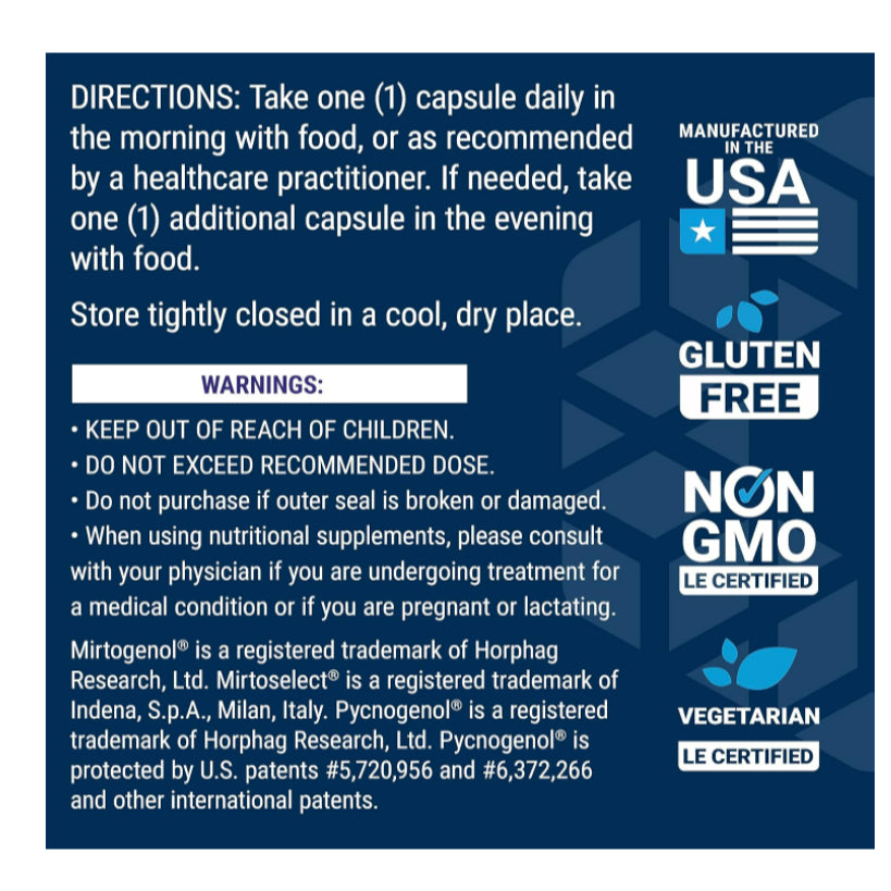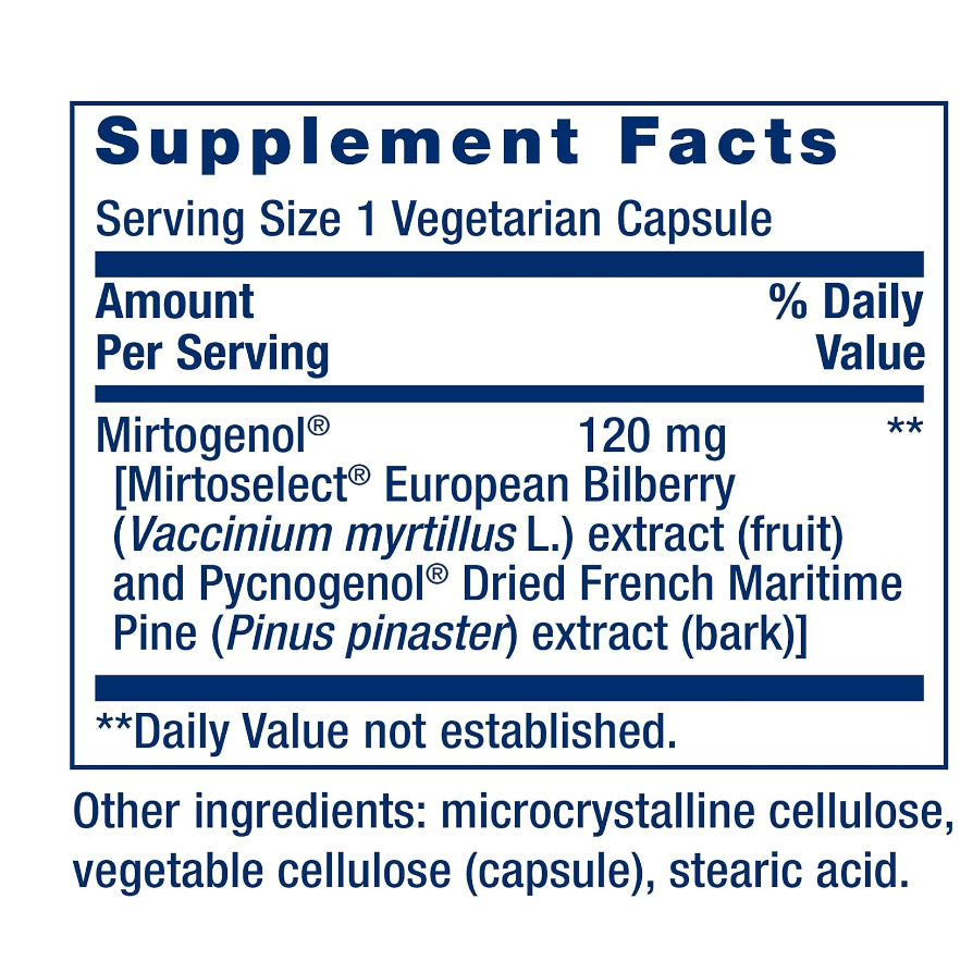 Supports Healthy Eye Pressure: Mirtogenol, derived from French maritime pine bark and bilberry extract, has been studied for its potential to support healthy intraocular pressure (IOP), which is crucial for maintaining overall eye health.