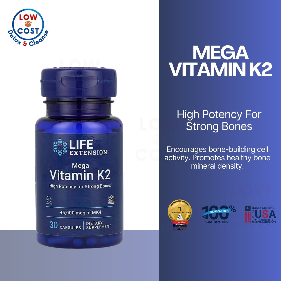 LowCostPH| Life Extension Mega Vitamin K2 High Potency for Strong Bones Daily Vitamin K2 Supplement