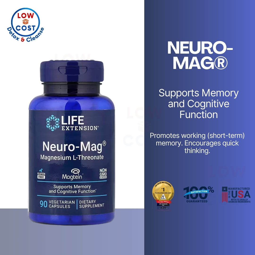 LowCostPH | Life Extension, Neuro-Mag, Magnesium L-Threonate, 90 Veg Caps, Powder Tropical Punch