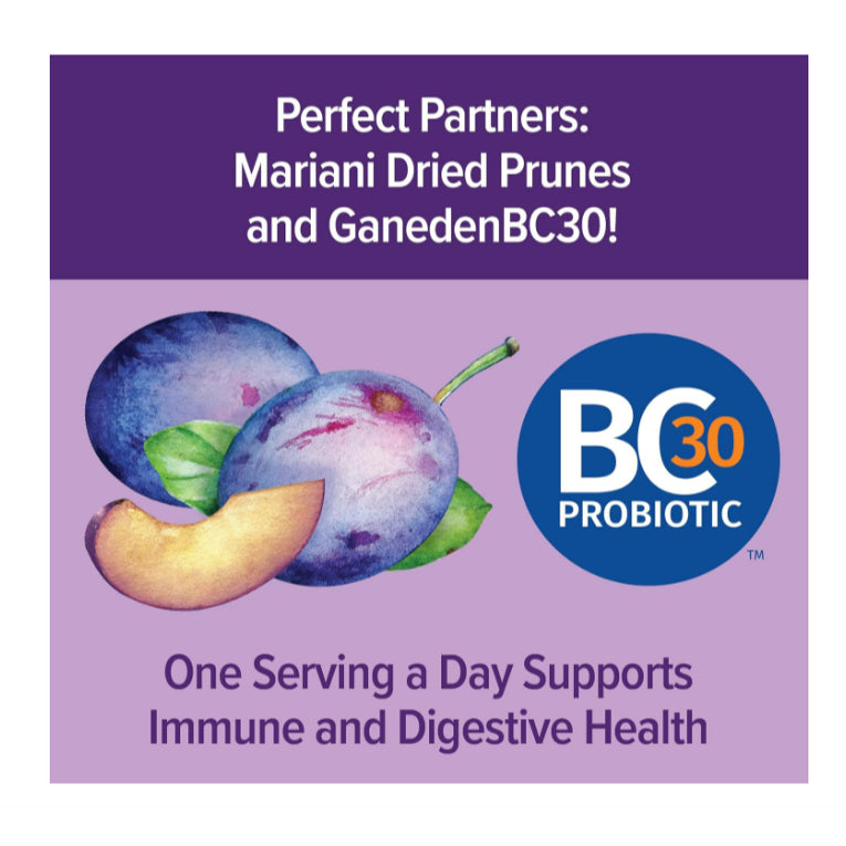 The added probiotics (beneficial bacteria) in these prunes can help balance the gut microbiome, which is essential for healthy digestion and overall wellness. Probiotics promote the growth of good bacteria in the gut, which can enhance nutrient absorption and immune function while reducing symptoms of digestive issues like bloating and gas.