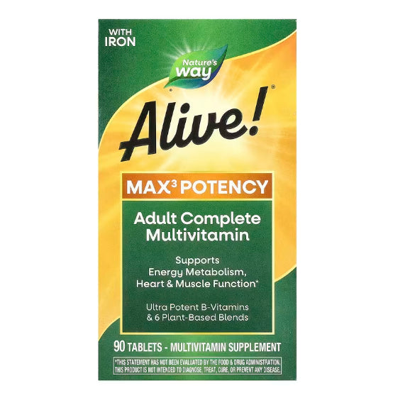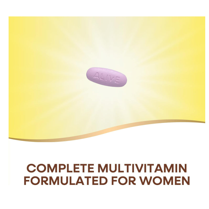 Energy Support: Alive! Women's Energy tablets contain a blend of vitamins, minerals, and botanicals that support energy metabolism and vitality. Ingredients such as B-vitamins (B1, B2, B3, B5, B6, B12), vitamin C, iron, and magnesium play key roles in energy production within the body.