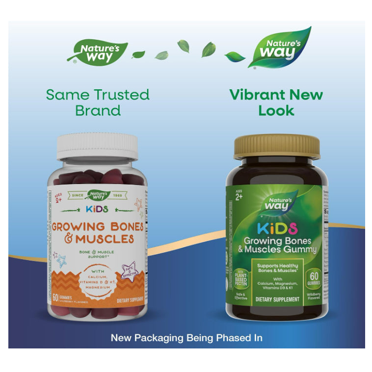 Nature's Way, Kids, Growing Bones & Muscles Gummy, Ages 2 +, Wildberry, 60 Gummies