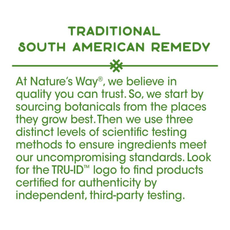 At Nature's Way®, we believe in quality you can trust. So, we start by sourcing botanicals from the places they grow best. Then we use three distinct levels of scientific testing methods to ensure ingredients meet our uncompromising standards. Look for the Tru-ID™ logo to find products certified for authenticity by independent, third-party testing.