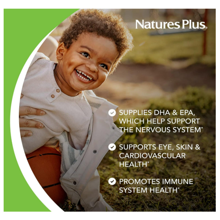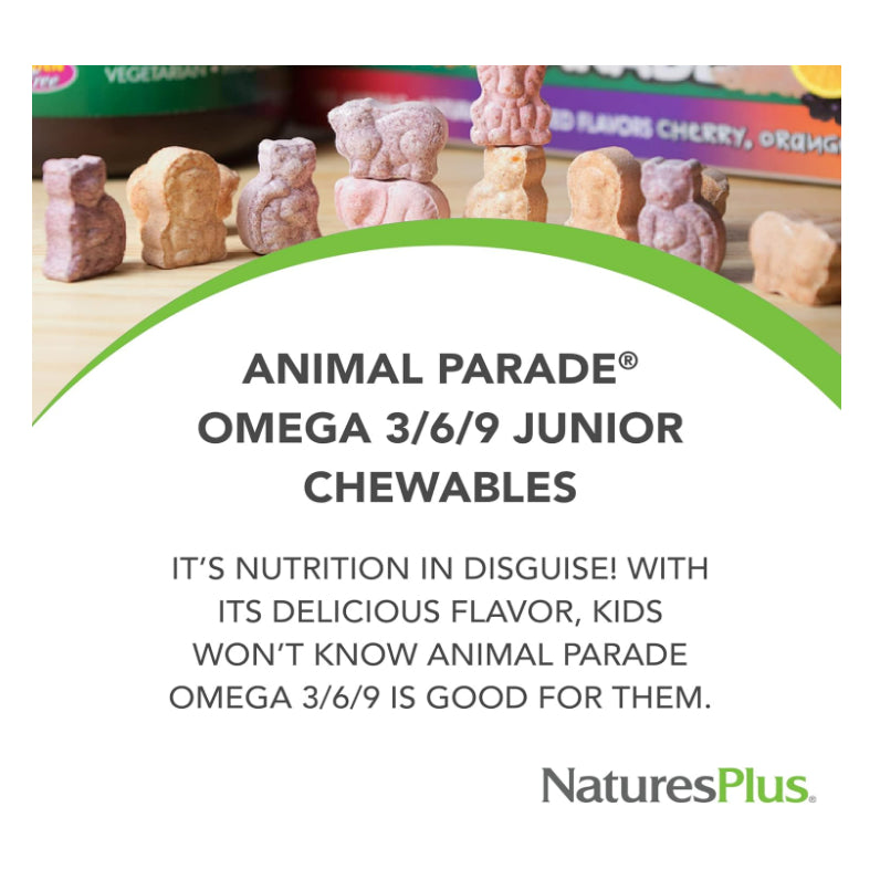 NaturesPlus Animal Parade Omega 3/6/9 Junior provides children with a blend of essential fatty acids, including Omega-3, Omega-6, and Omega-9, in chewable softgels with a natural lemon flavor. Here are the key health benefits:
