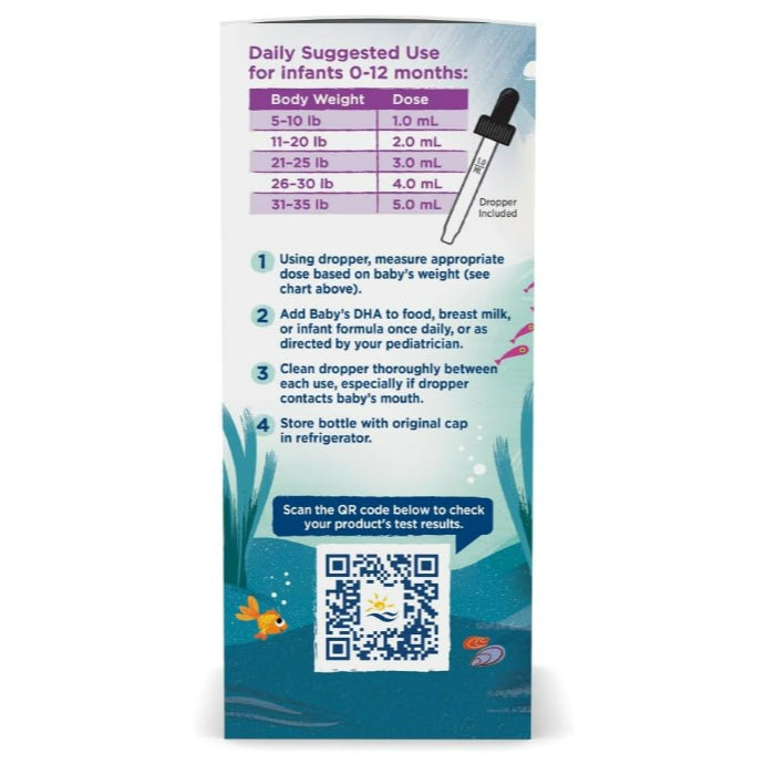 Includes a measured dropper for convenient dosing. Baby's DHA Vegetarian can be easily added to formula or food.
