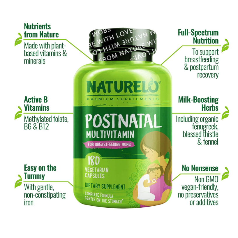 - Naturelo's postnatal multivitamin likely provides a broad spectrum of essential vitamins and minerals to support overall health during the postpartum period.