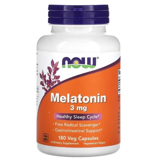 LowCostPh | NOW Foods, Melatonin, 3 mg, 180 Veg Capsules, Healthy Sleep Cycle Free Radical Scavenger