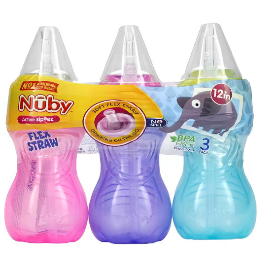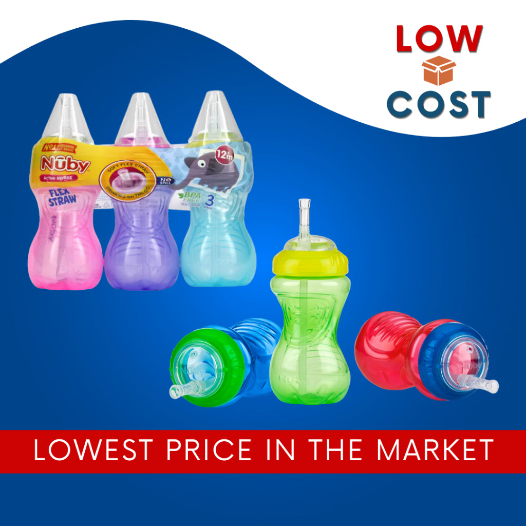 LowCostph | Nuby, Clik-it FlexStraw Cup, 12+ Months, Boy, 3 Pack, 10 oz (300 ml) Each