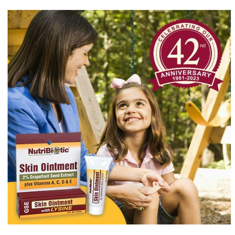 NutriBiotic® Skin Ointment is designed for most minor skin irritations and to help support healthy tissue. Contains lysine, 2% Citricidal brand grapefruit seed extract, and Vitamins A, C, D & E. These ingredients are used by healthcare professionals worldwide.