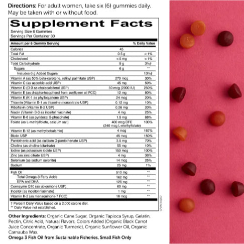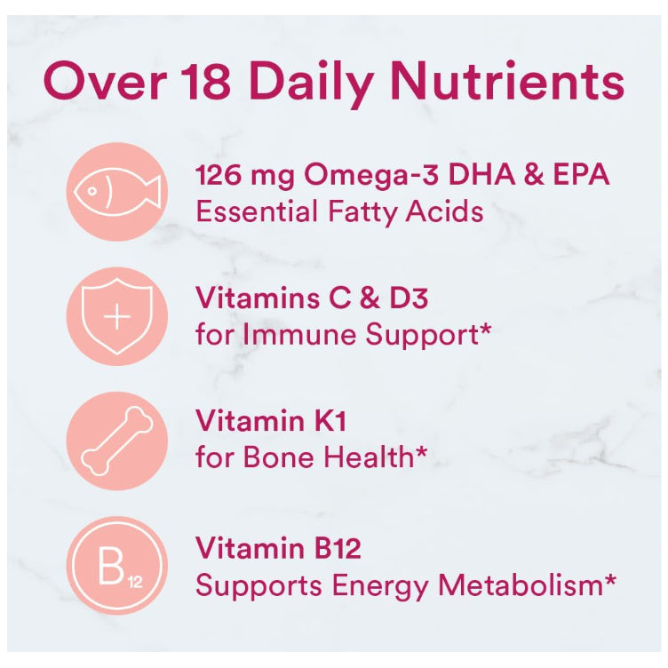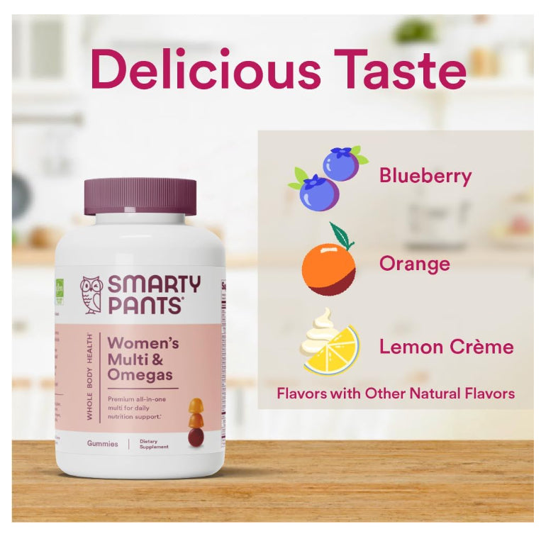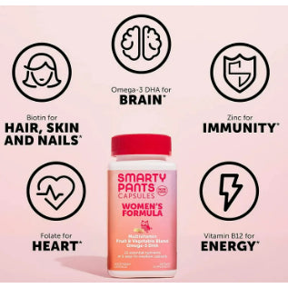 SmartyPants Women's Multi & Omegas Gummies provide a comprehensive blend of essential vitamins, minerals, and omega-3 fatty acids, tailored to support women's overall health. Here are the key health benefits: