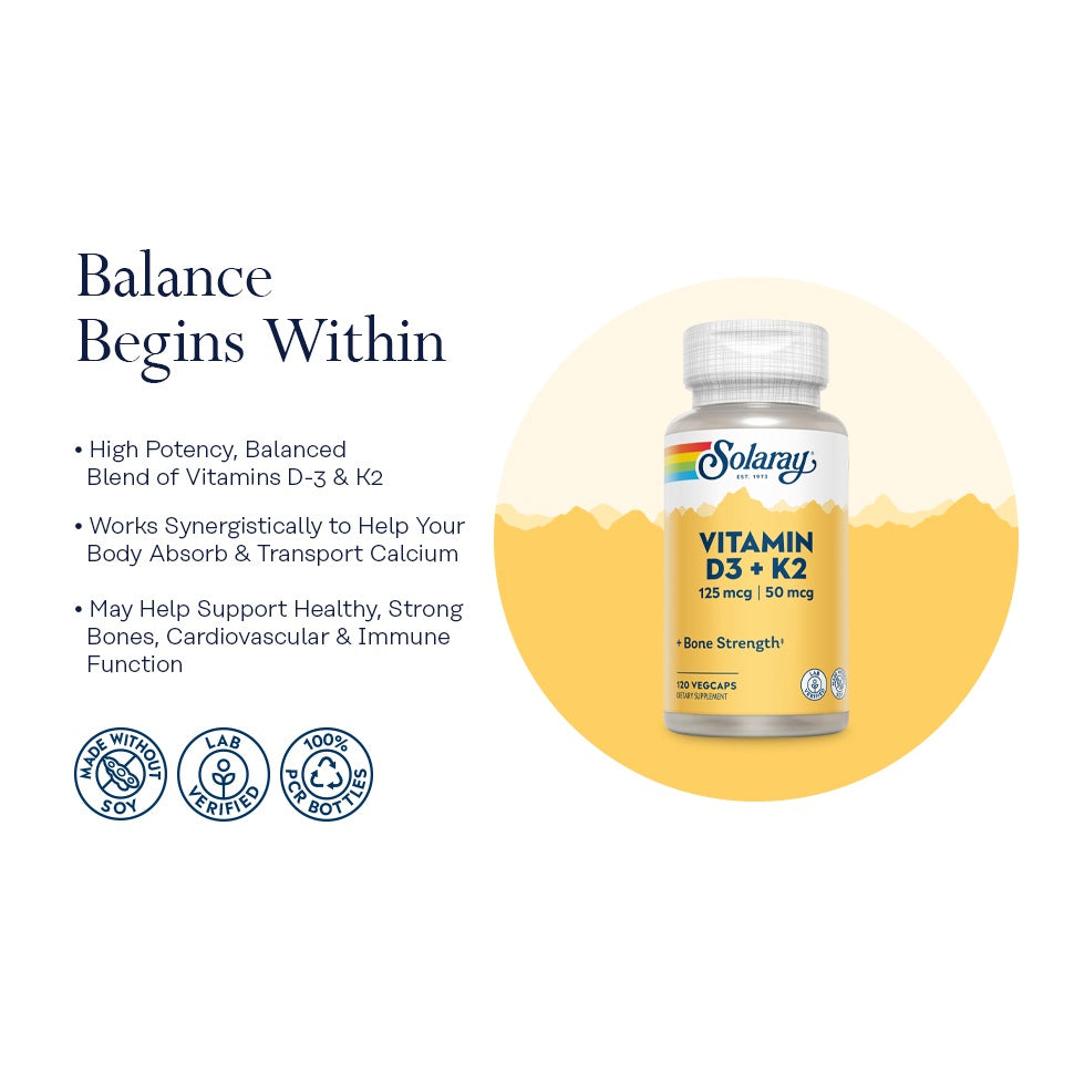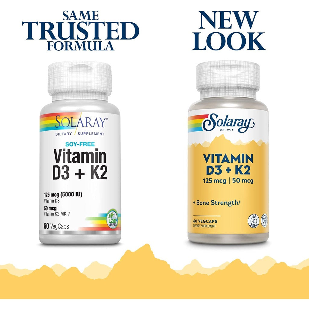 LowCostPH | Solaray, Vitamin D3 + K2, 60VegCaps, for Bone Strength, Dietary Supplement