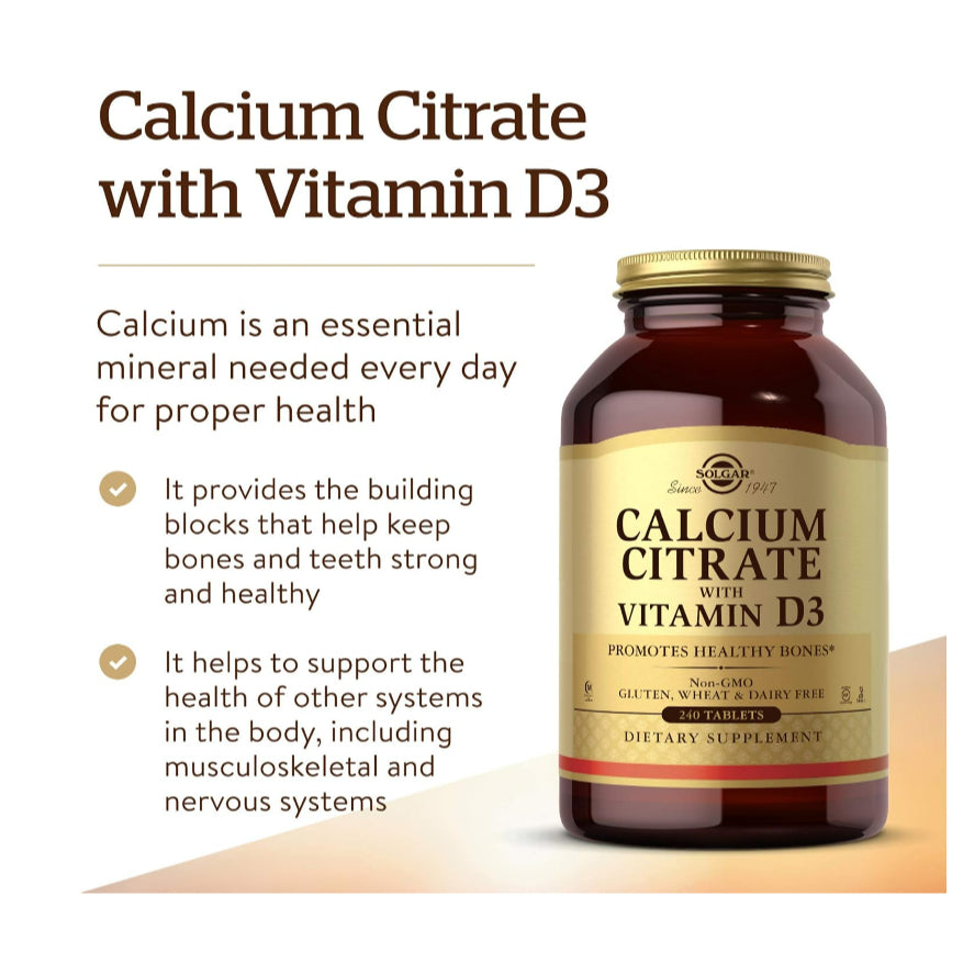 LowCostPH| Solgar, Calcium Citrate with Vitamin D3, 240 Tablets