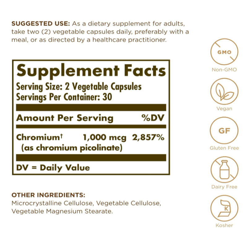 2. **Solgar Chromium Picolinate, 200 mcg:**
