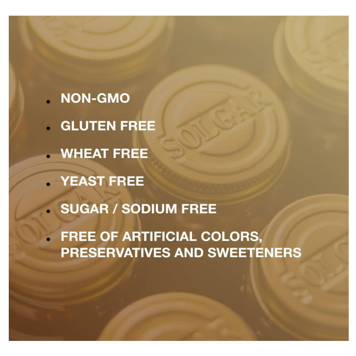 Free of: Gluten, wheat, dairy, soy, yeast, sugar, sodium, artificial flavor, sweetener, preservatives and color.