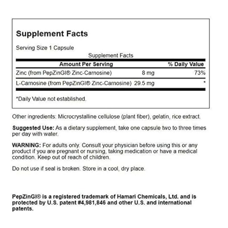 Reduces Inflammation: Both zinc and carnosine have anti-inflammatory properties that can help reduce inflammation in the digestive tract and other parts of the body.