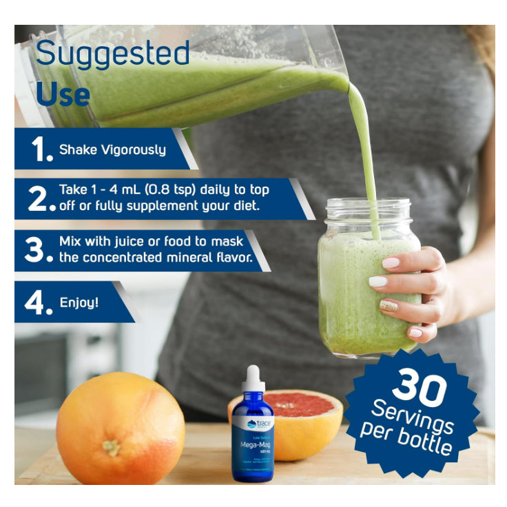 LowCostPH| Trace Minerals ®, Low Sodium Mega-Mag, 400 mg, 4 fl oz (118 ml)