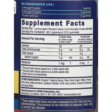 Mommy's Bliss Kids Sleep Gummies with Melatonin are a product designed to support children's sleep by providing a gentle dose of melatonin along with other ingredients. Here are some potential benefits associated with these gummies: