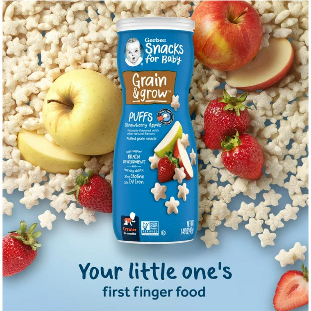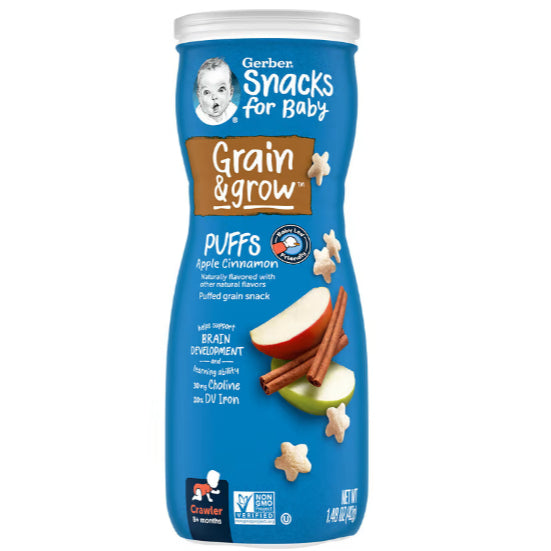 Gerber® Grain & Grow™ Puffs have 20% DV of Iron and 30 mg Choline per serving for your little one to support brain development and learning ability.