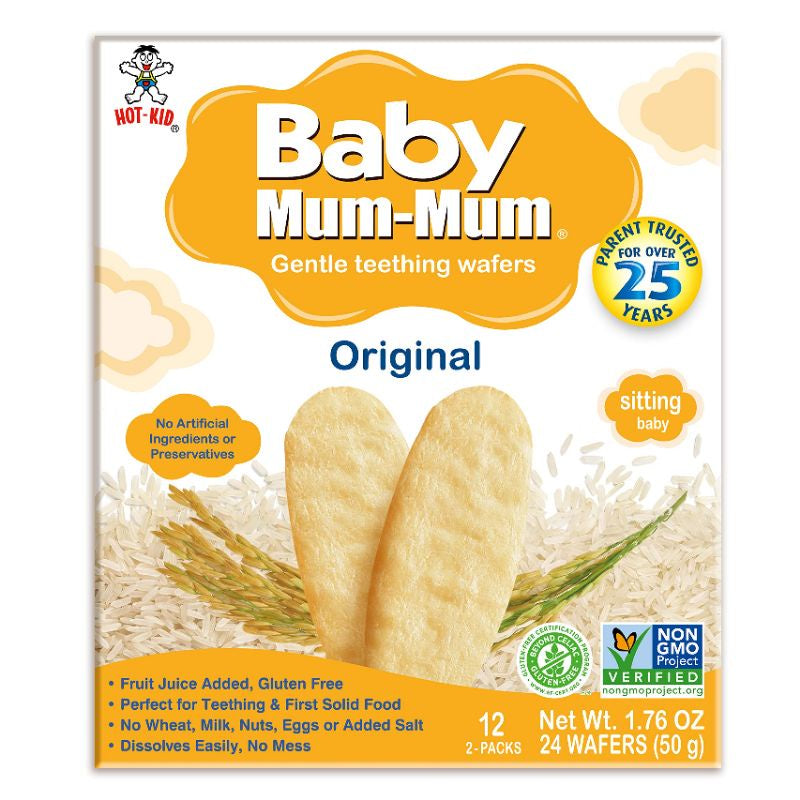 Baby Mum-Mum is the original and most popular rice teething wafer in North America, parent trusted for over 25 years. They are made from premium Japonica rice and dissolve easily, making it perfect gluten free, no-mess choice for your child. You may give Baby Mum-Mum Gentle Teething Wafers to your child as soon as they are ready for solid food.