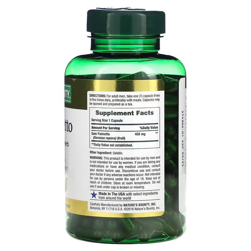 Nature's Bounty Saw Palmetto is a dietary supplement designed to support prostate health and overall well-being. Here’s a detailed overview of the product: