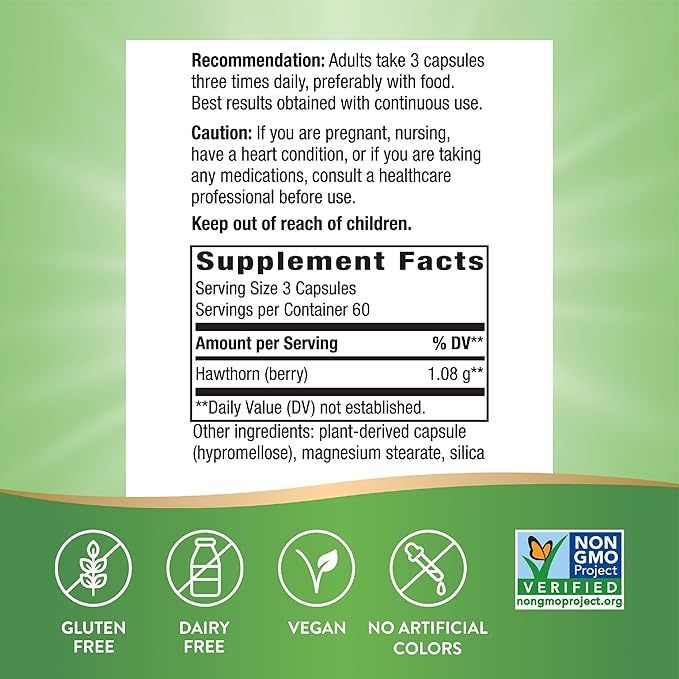 Nature's Way Hawthorn Berries is a dietary supplement that provides hawthorn berry extract, traditionally used for its potential cardiovascular benefits. Here’s an overview of this product: