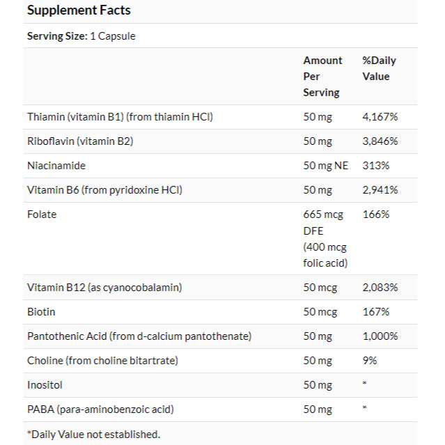 Support overall health throughout the body with Swanson Balance B-50 Complex! This unique formula delivers a blend of B vitamins to promote cardiovascular health, mental health, energy metabolism, and much more. Each capsule delivers high potencies of the entire B-vitamin family to ensure optimum nutritional performance.