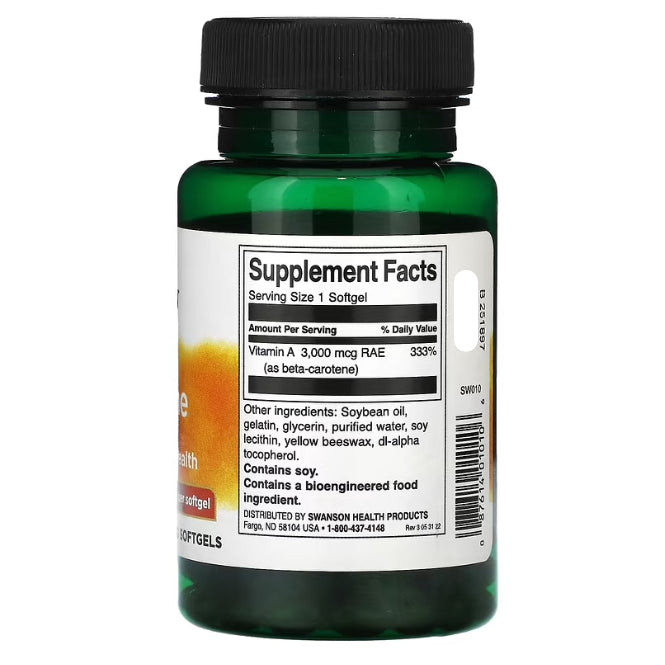 Swanson Beta-Carotene delivers antioxidant protection throughout the body as well as promote vision health. This unique supplement is a plant pigment that can be converted into vitamin A by the body as needed.