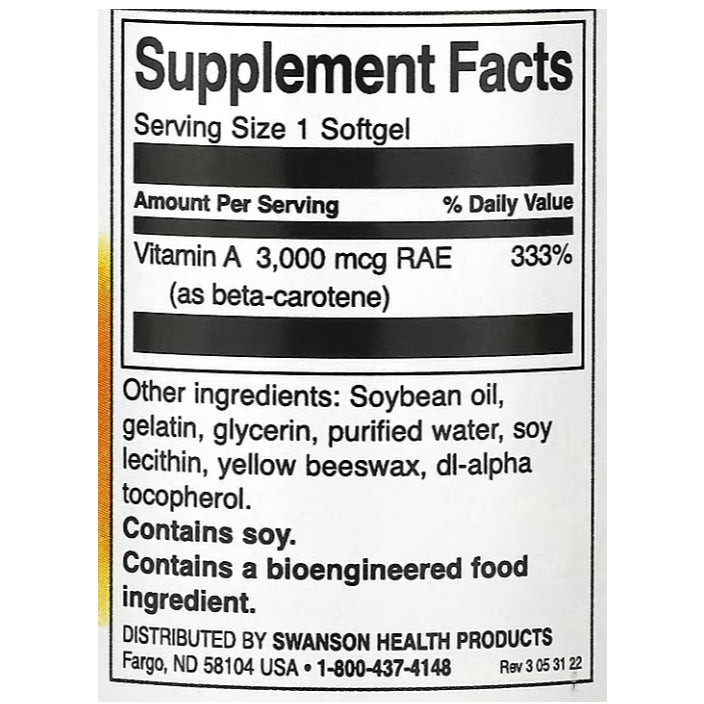Dosage: The supplement provides 10,000 IU of beta carotene per softgel, which is a higher dose compared to the typical daily recommended intake. The daily recommended intake for vitamin A (from all sources) for adults is around 900 mcg RAE for men and 700 mcg RAE for women, which is much lower than the amount in this supplement.