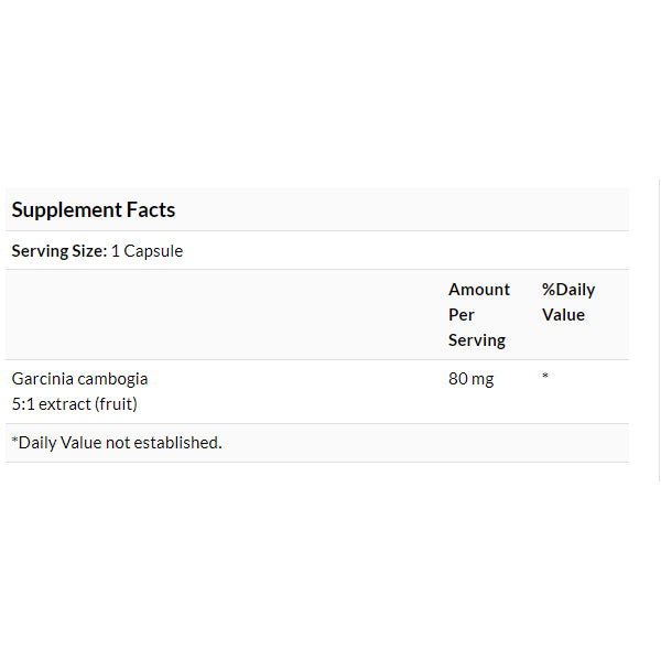 Garcinia cambogia contains hydroxycitric acid (HCA), which along with healthy diet and exercise can help support a healthy weight. Garcinia is a plant native to Asia, Australia, southern Africa and Polynesia. Its fruits have been eaten by local populations for centuries. It has also been used to give flavor to culinary dishes. Each capsule delivers 80 mg garcinia cambogia.