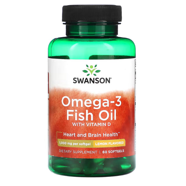Swanson Omega-3 Fish Oil with Vitamin D (Lemon, 1,000 mg, 60 Softgels)