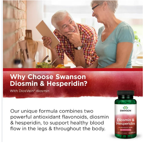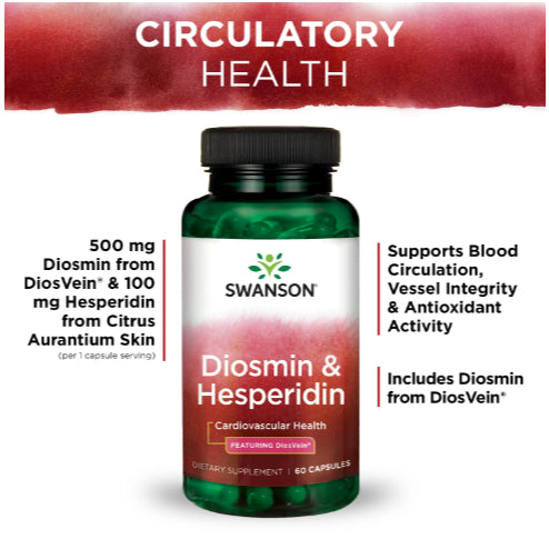 Vein Health: Diosmin and hesperidin help support the integrity and strength of blood vessels. They can be beneficial for individuals dealing with chronic venous insufficiency (CVI) or symptoms related to varicose veins and spider veins.