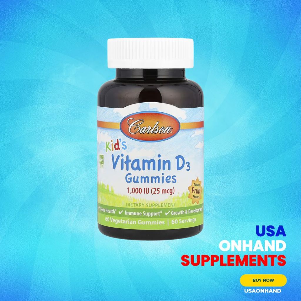 USA Onhand | Carlson, Kid's, Vitamin D3 Gummies, Natural Fruit ( Bone, Joint & Cartilage )