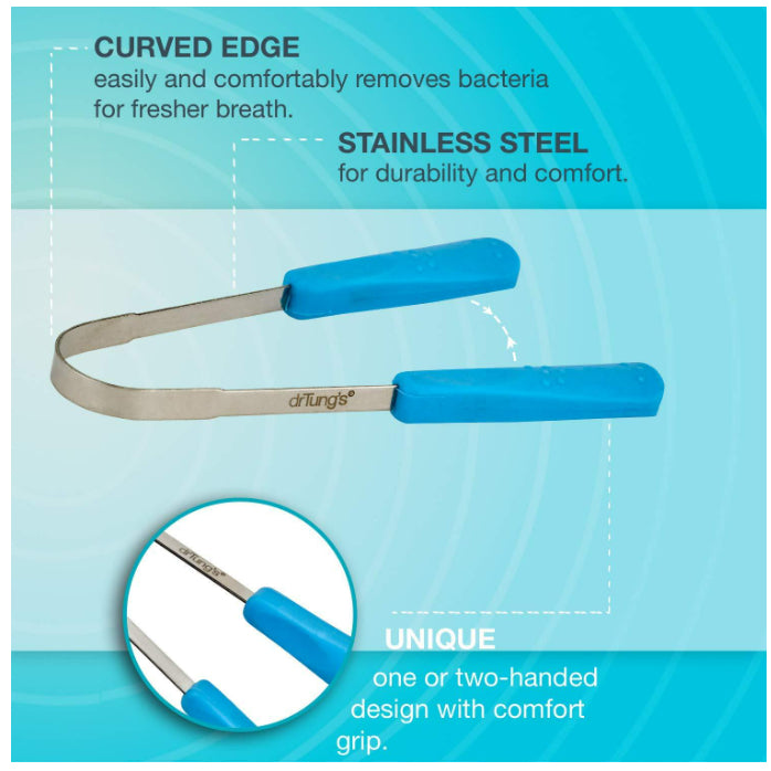 Dr. Tung's Tongue Cleaner is a simple yet effective tool designed to promote oral hygiene by gently removing bacteria, food debris, and dead cells from the surface of the tongue. It consists of a curved stainless steel or copper scraper with a comfortable grip handle for easy use. Here are some key features and benefits of using Dr. Tung's Tongue Cleaner: